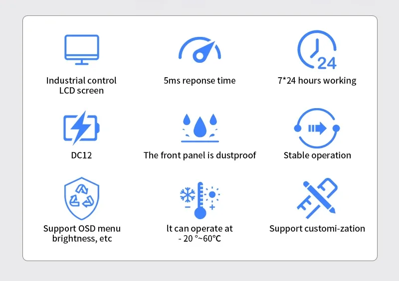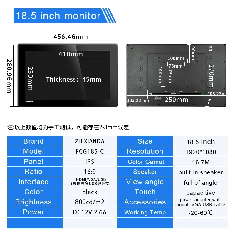 The specifications of 18.5 Inch 16:9 PCAP Industrial Touch Monitor
