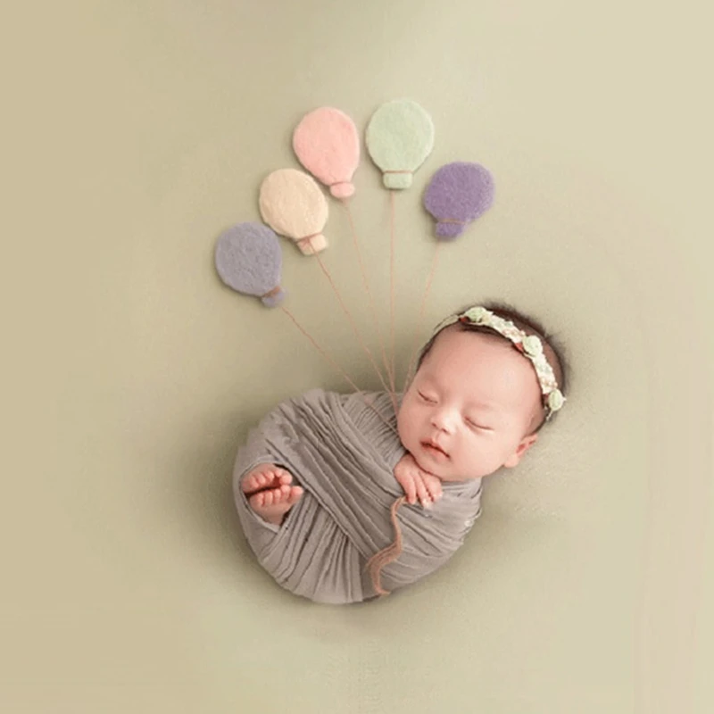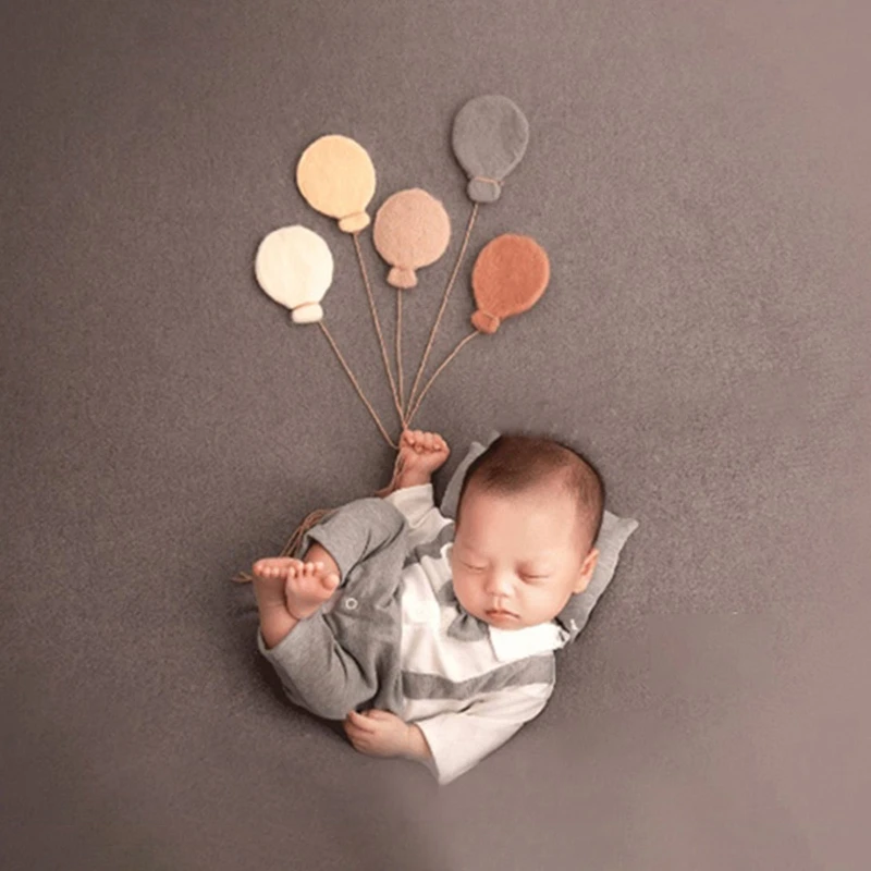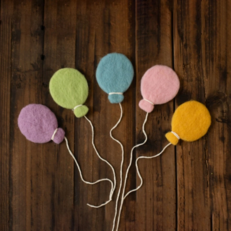 5Pcs Handmade Baby Wool Felt Balloon Decorations Newborn Photography Props Infant Photo Shooting Accessories5Pcs Handmade Ba...