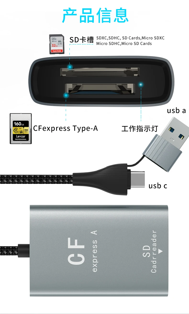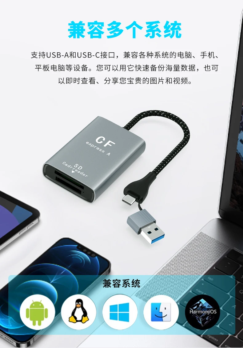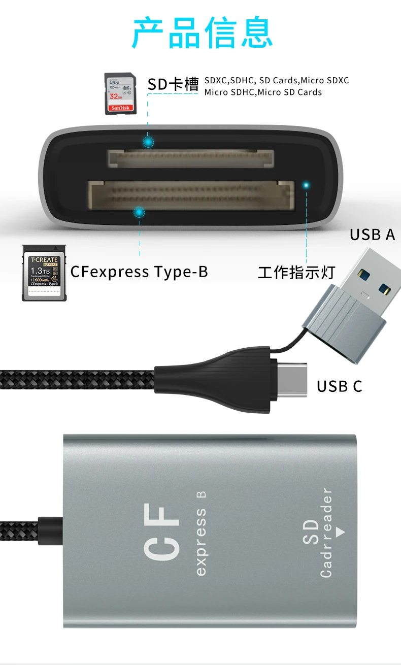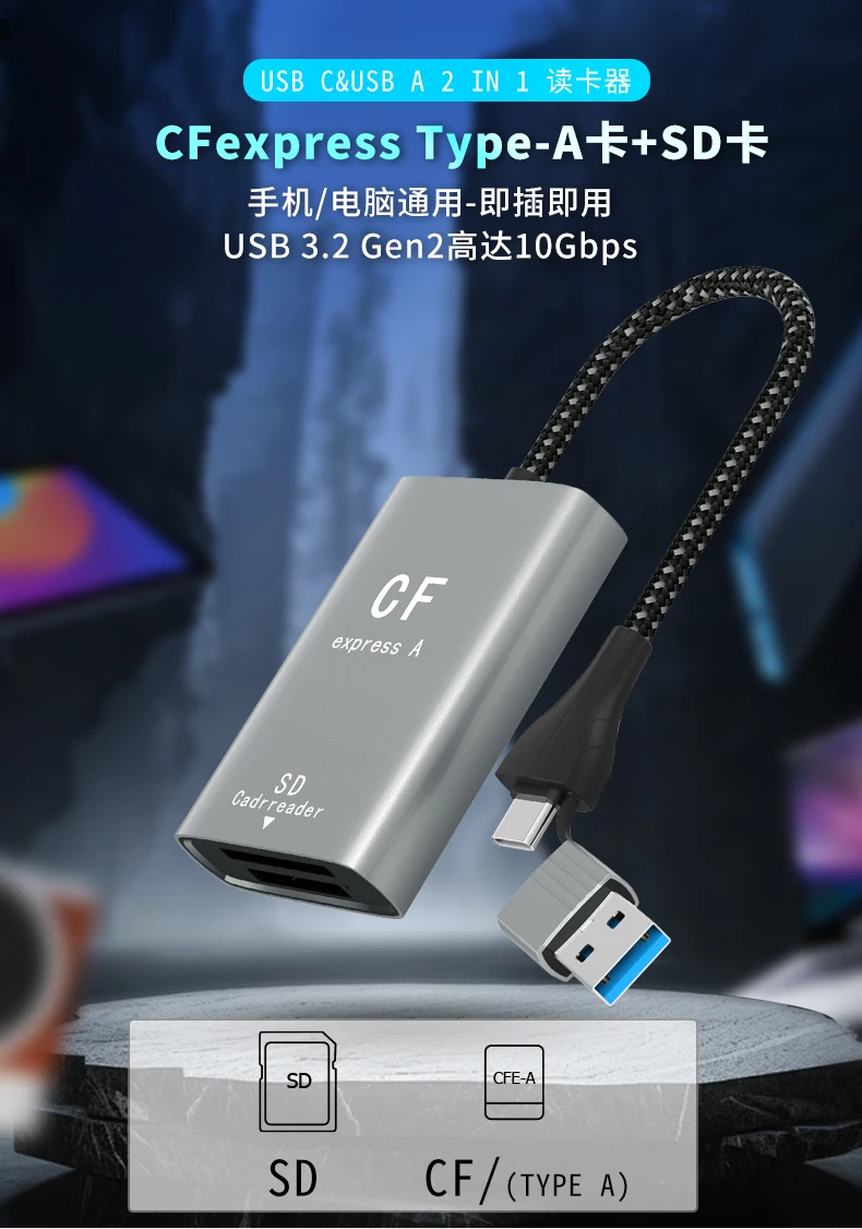 AIRSKY CFexpress USB A Type A/B & SD Card Reader 4K 60HZ PD 100W Video Capture for Camera Computer Mobile Phone Huawei Samsung