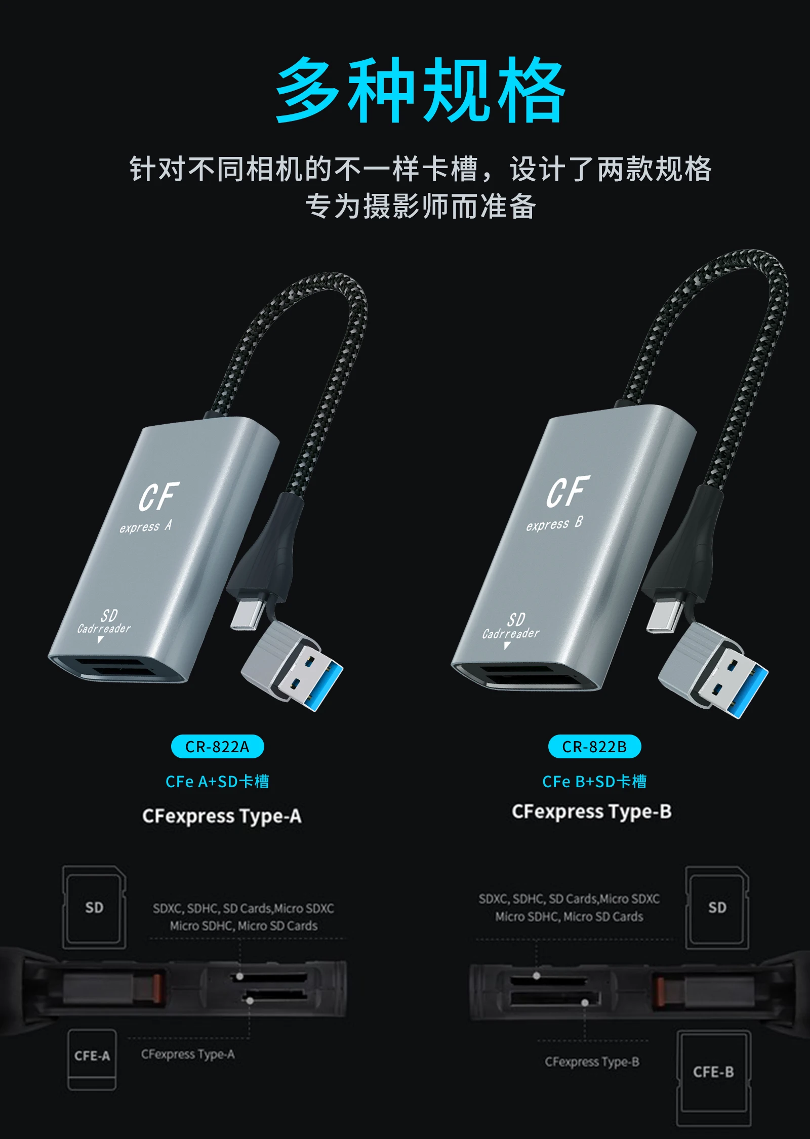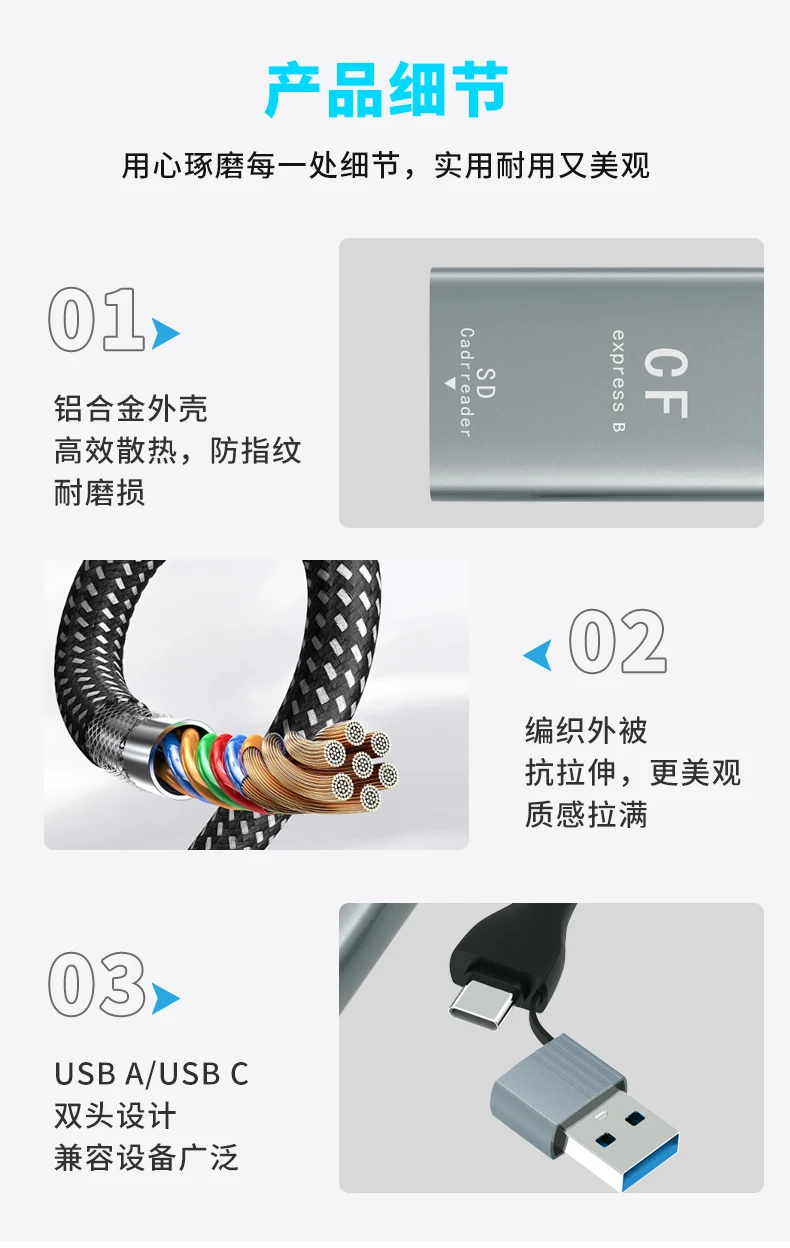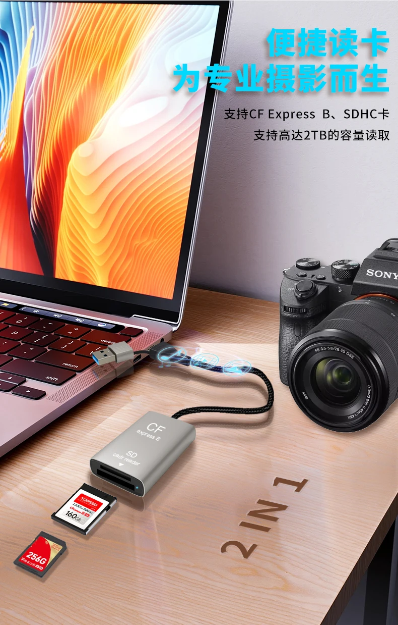 AIRSKY CFexpress USB A Type A/B & SD Card Reader 4K 60HZ PD 100W Video Capture for Camera Computer Mobile Phone Huawei Samsung