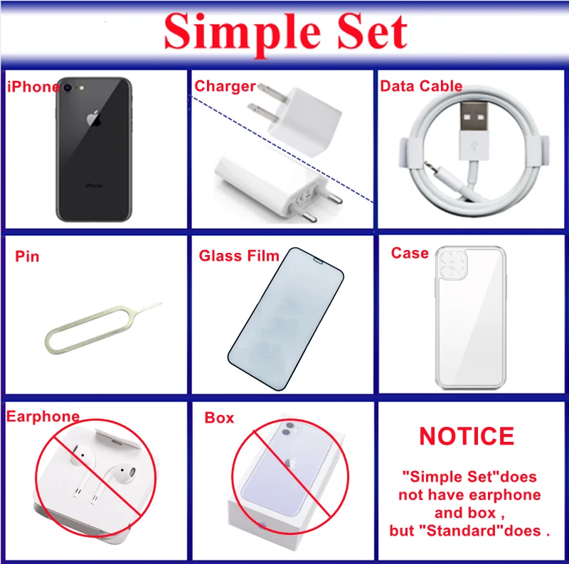 “SE 2020 Simple Set” means you will get iPhone se2020 phone + AC wall charger + data cable , but no original box and no earphone .