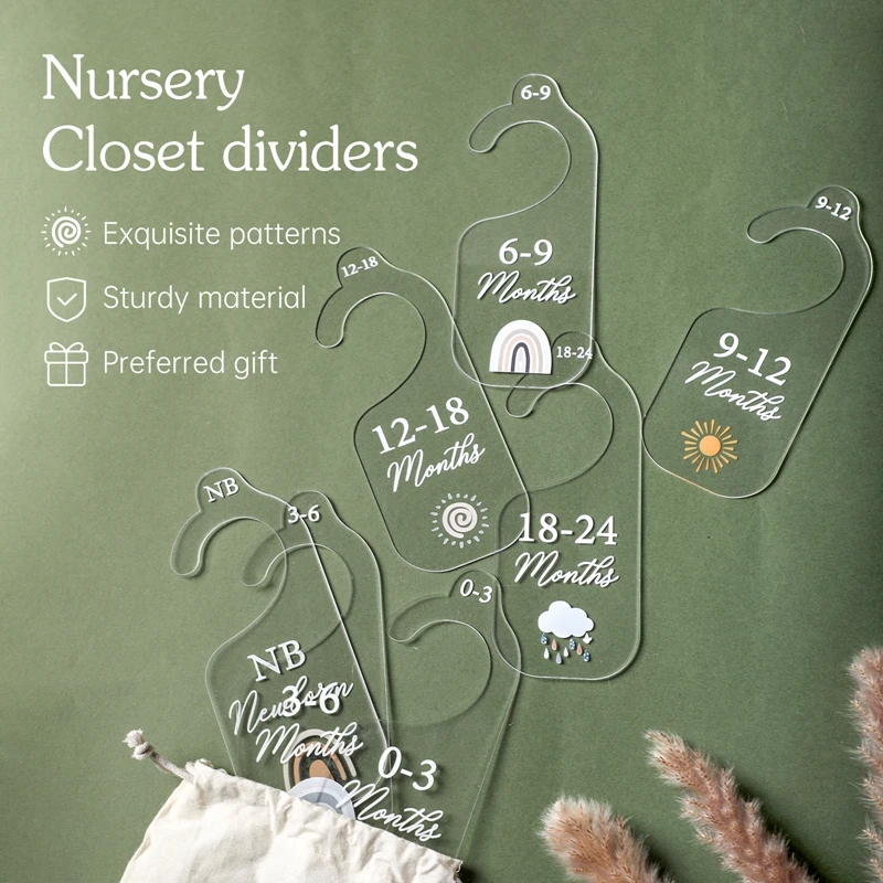 clear acrylic nursery closet dividers, minimalist clothes dividers, welcome baby party gifts