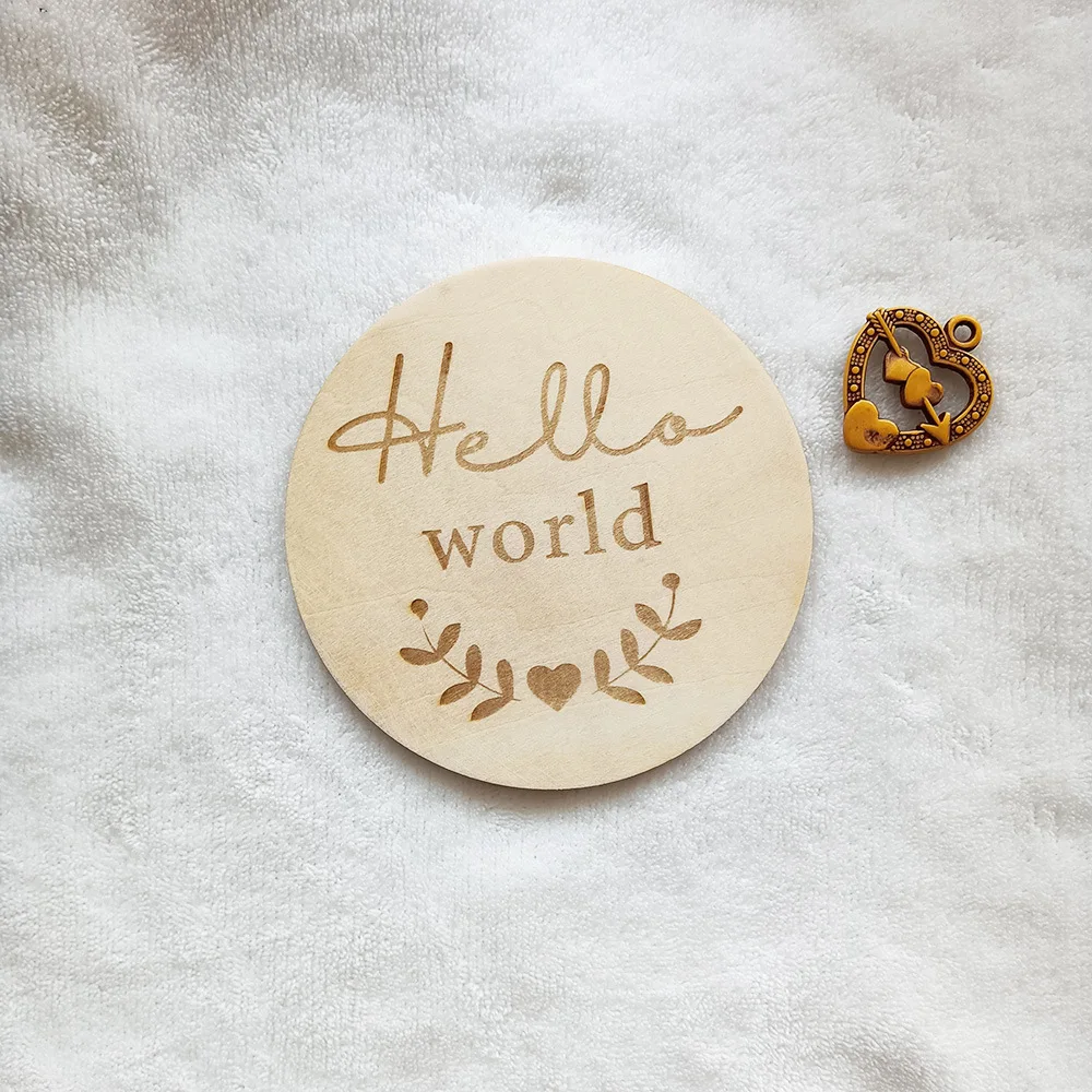 Hello world hello world newborn party Wood chip Commemorative card Photo souvenir wood chip