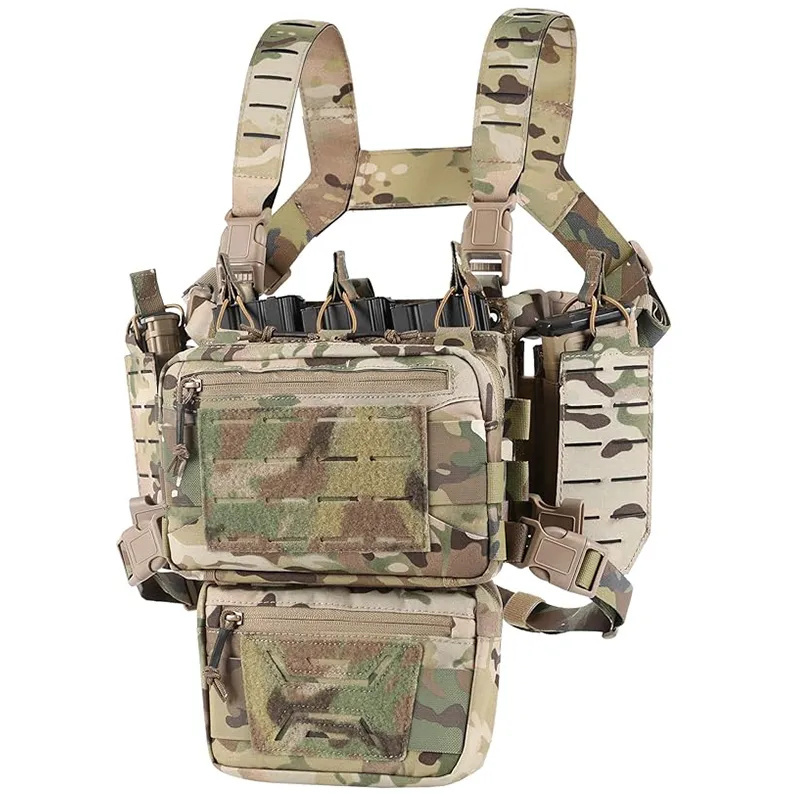[Adjustable & Detachable]Micro chest rig Max waist:41inches; Easy fits your body figures with adjustable universal H-Strap harness with buckle closure. Every part of the chest rig can be dismantled, You are free to assemble it into your favorite chest rigs.