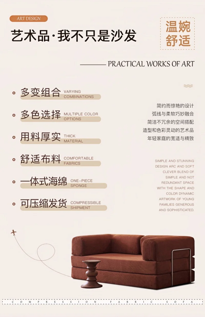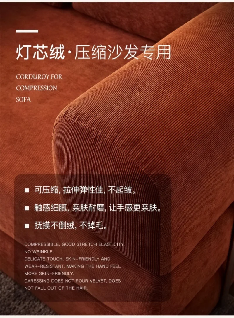 Compressed Sofa, Italian Minimalist Retro High-end Corduroy Living Room Sofa, Sofa Bed, Foldable, Washable, CustomizableCompressed Sofa,...
