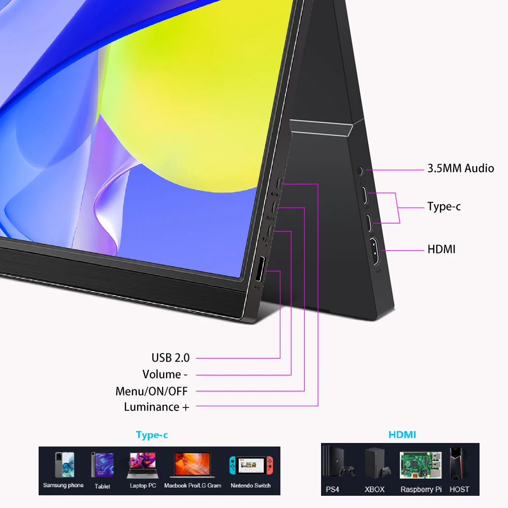 Multi-interface: USB2.0 OTG Support/ Type-C 1/ Type-C 2/ Headphone Jack/ HDMI-compatible