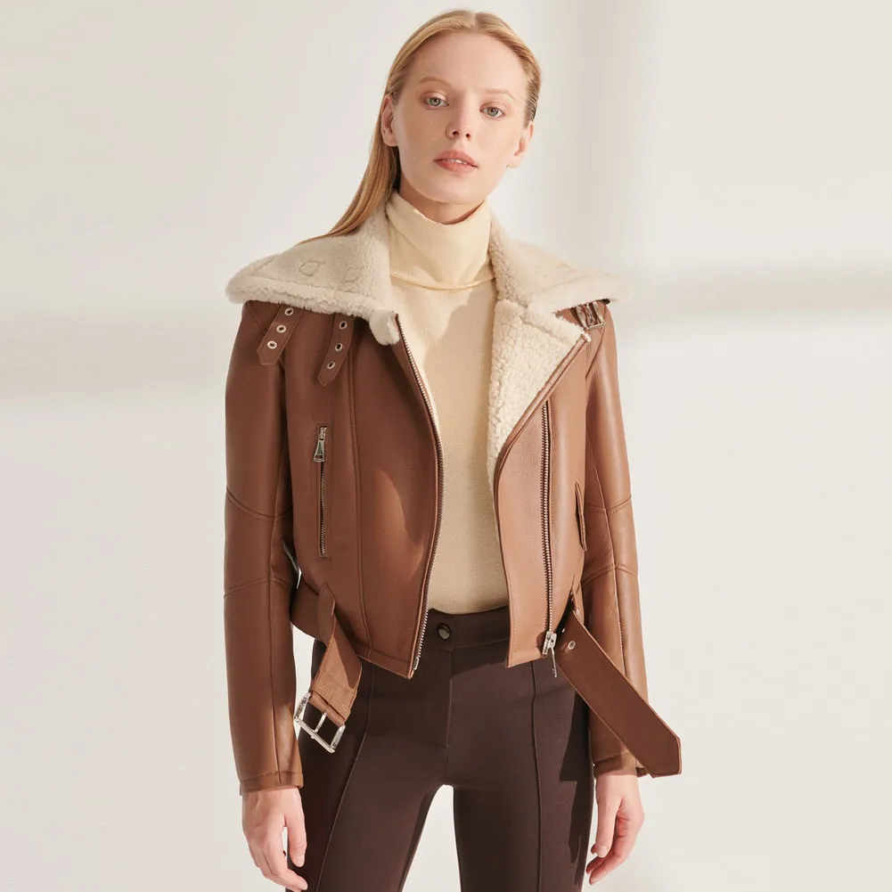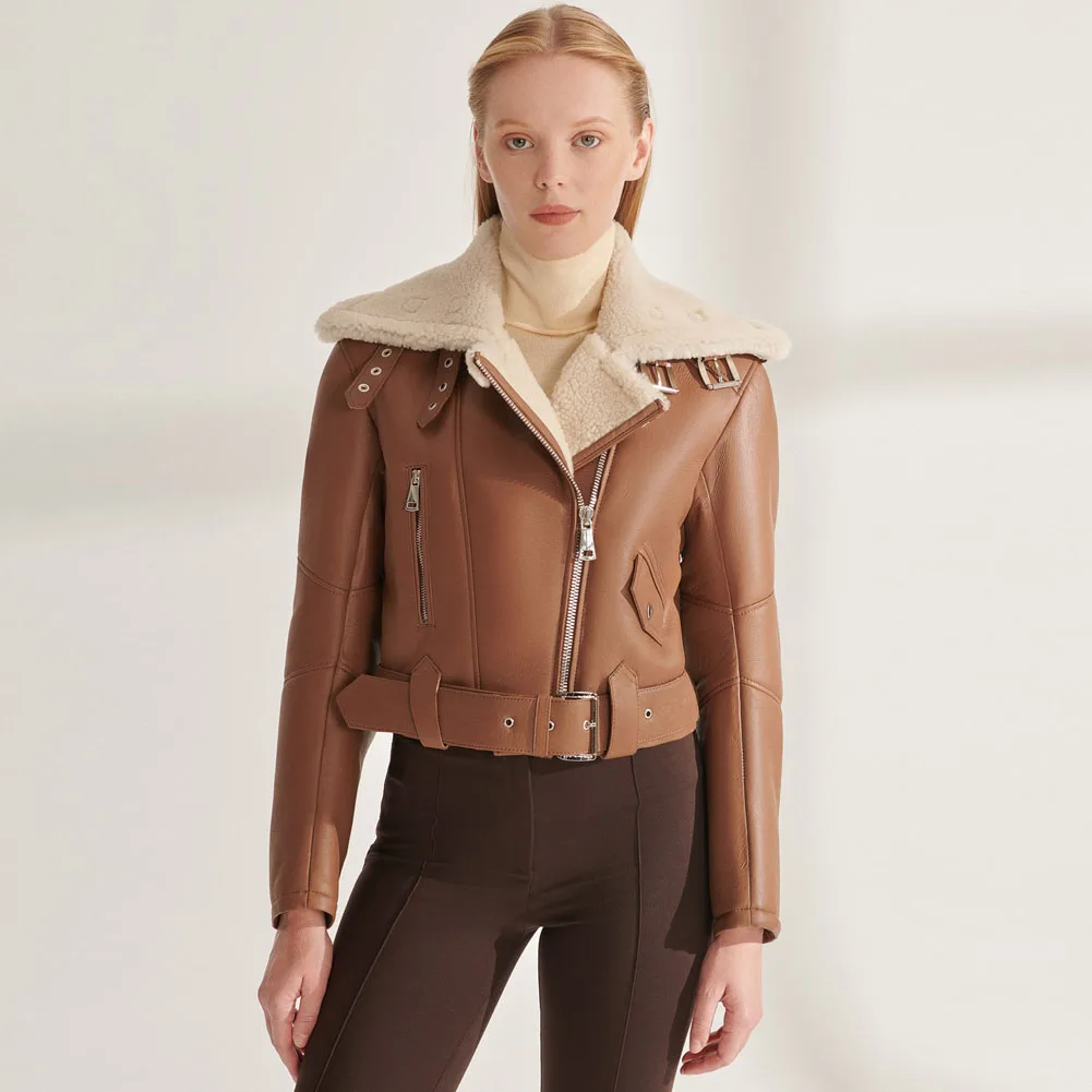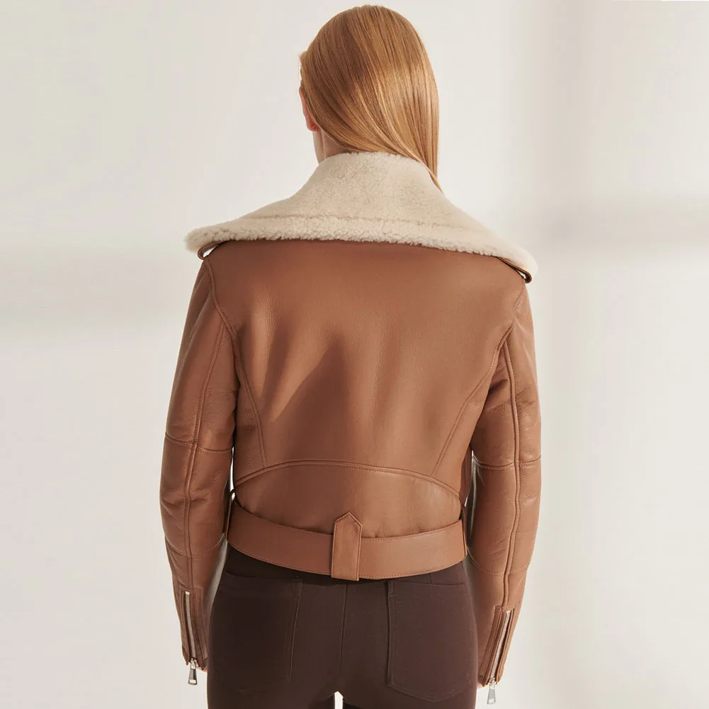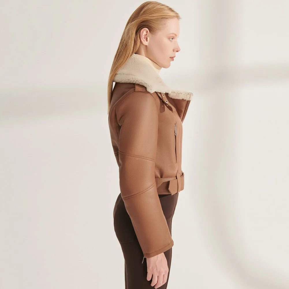 Denny&Dora Brown Womens Shearling Jacket Warmest Winter Coats Natural Sheepskin CoatDenny&Dora ...