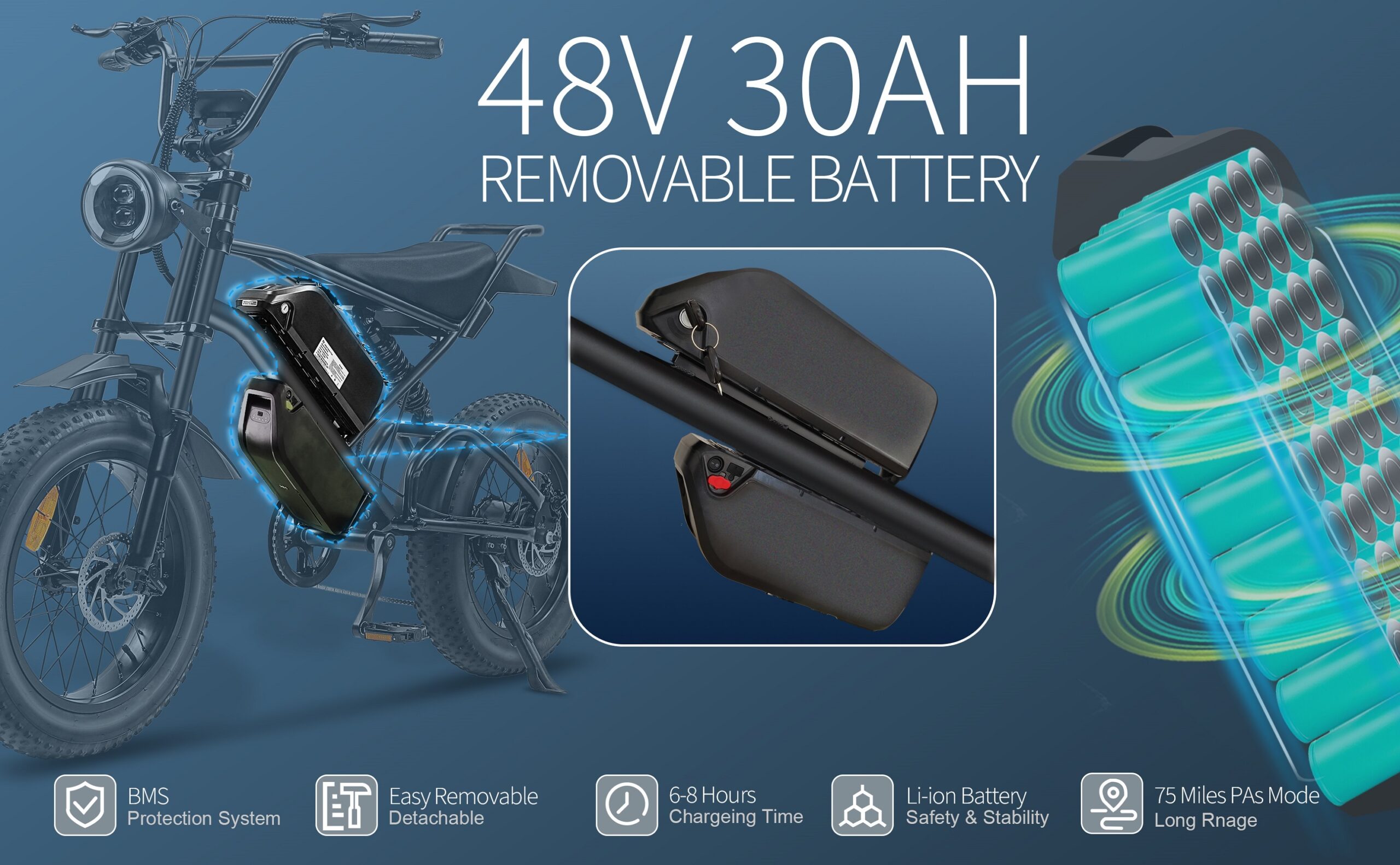 Battery: 48v lithium battery plastic case (15Ah*2=30Ah)