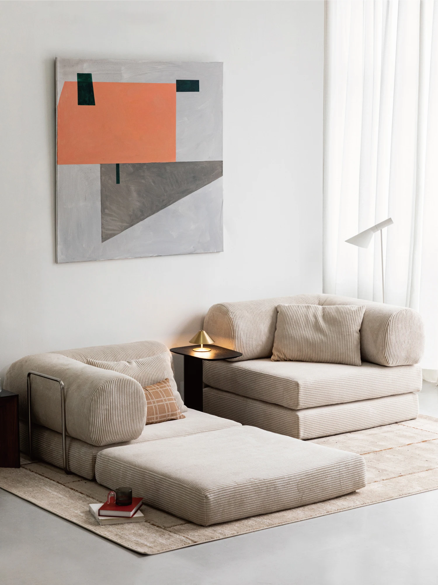 Italian Compressed Sofa Minimalist Retro High-end Corduroy Living Room Sofa, ,Sofa Bed, Foldable, Washable, Customizable