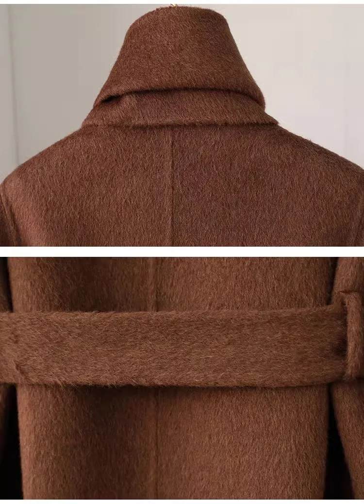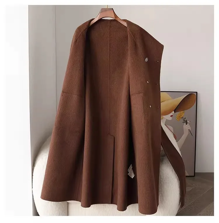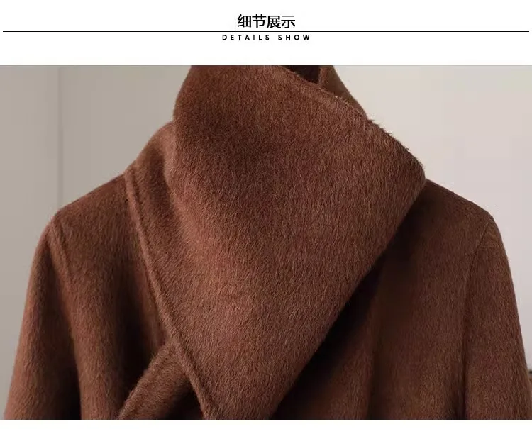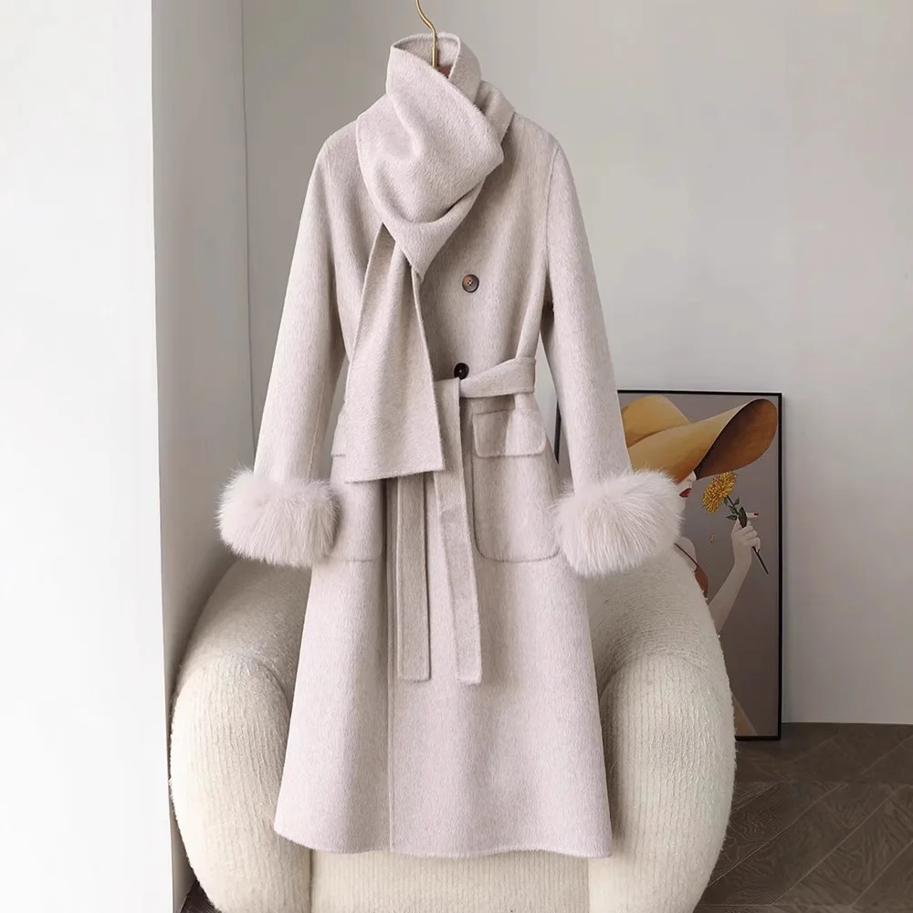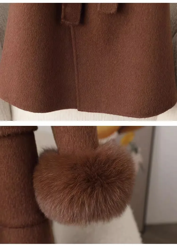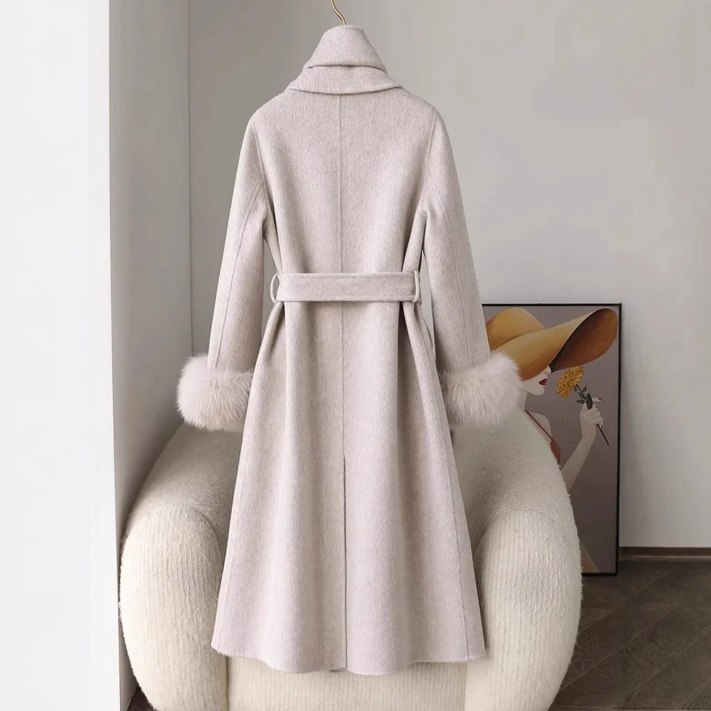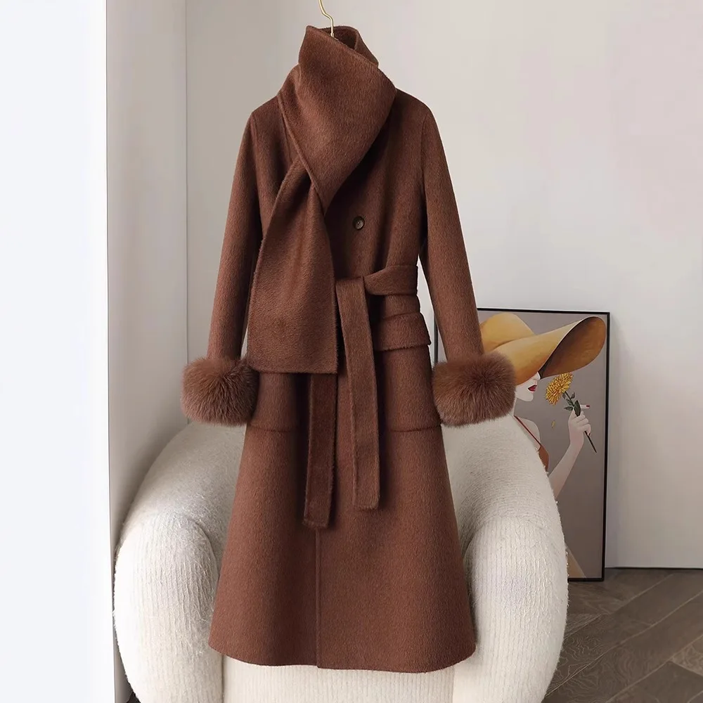 Fashion Knitted Cashmere Fur Collar Wool Coat Winter Coats for Ladies Women Long Wool Coat quantity