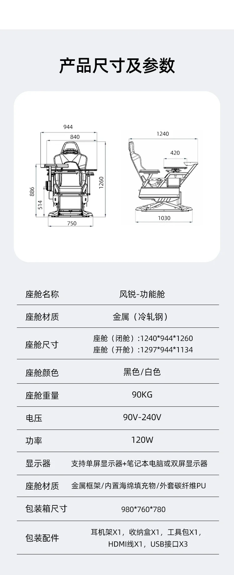 1. White single screen version – (steel foot fixed armrest)