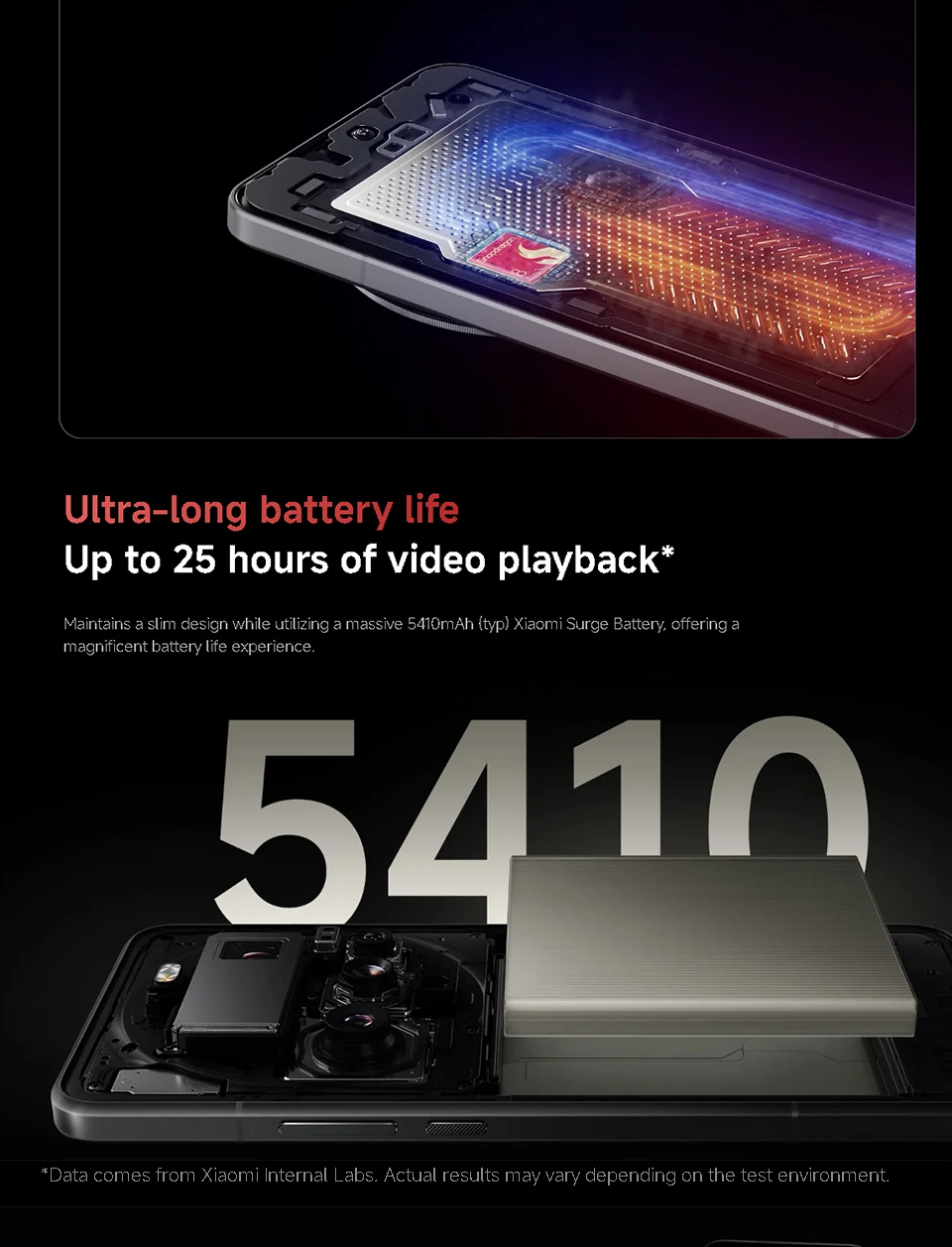 Battery——-5410mAh (typ) Xiaomi Surge Battery,90W HyperCharge*,80W wireless HyperCharge*