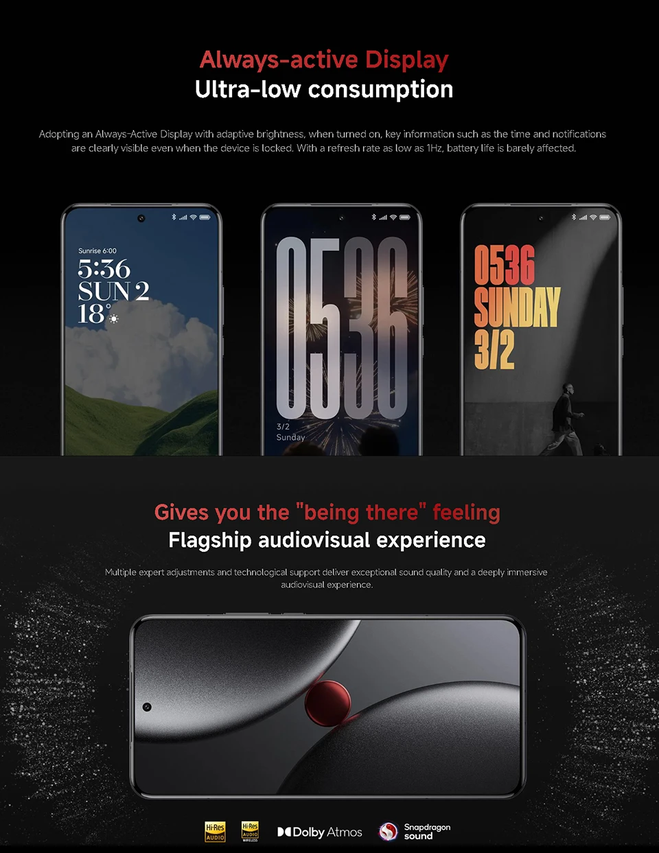 Audio———Stereo speakers | 4-Mic arraySupports audio formats: MP3, FLAC, APE, AAC, OGG, WAV, AMRHi-Res & Hi-Res Audio Wireless certification, Dolby Atmos®