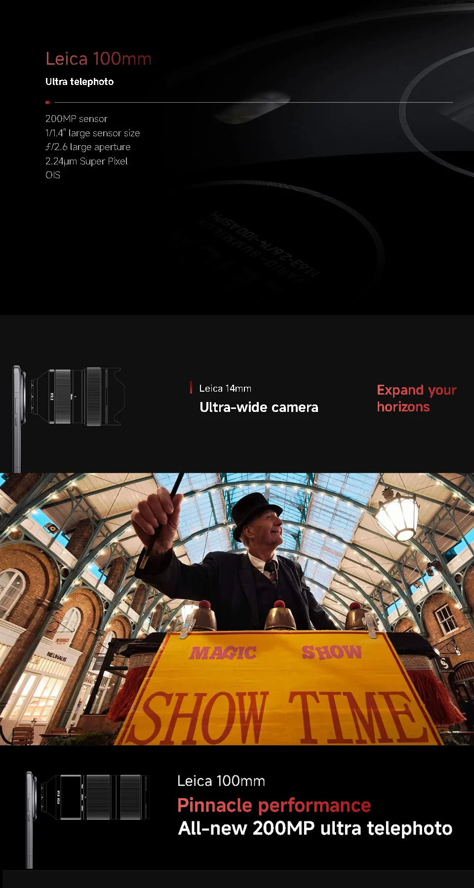 Camera——-Rear Camera: Leica professional optical lens OIS+50MP+50MP+50MP+Leica 200MP ultra telephoto camera,Front Camera : 32MP in-display selfie camera
