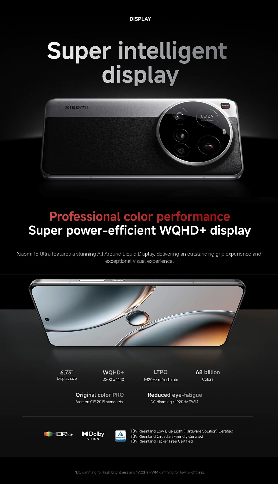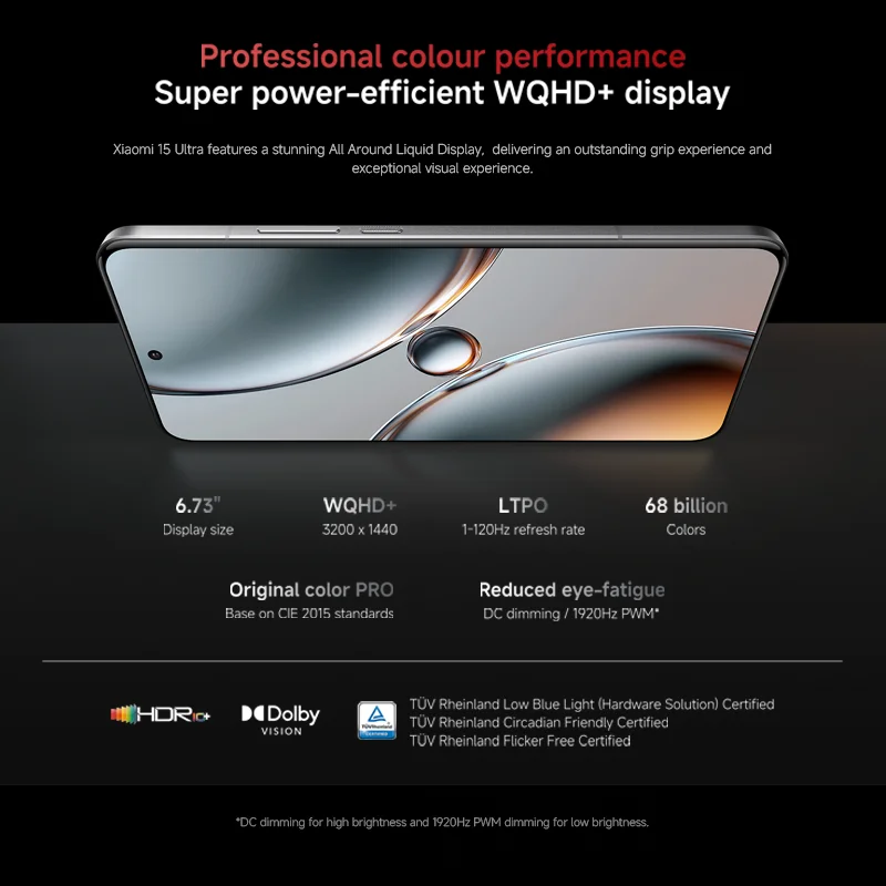 Screen——–6.73" WQHD+ 3200 nits ultra-bright display,Refresh rate: 1-120Hz,Resolution: 3200 x 1440, 522 ppi