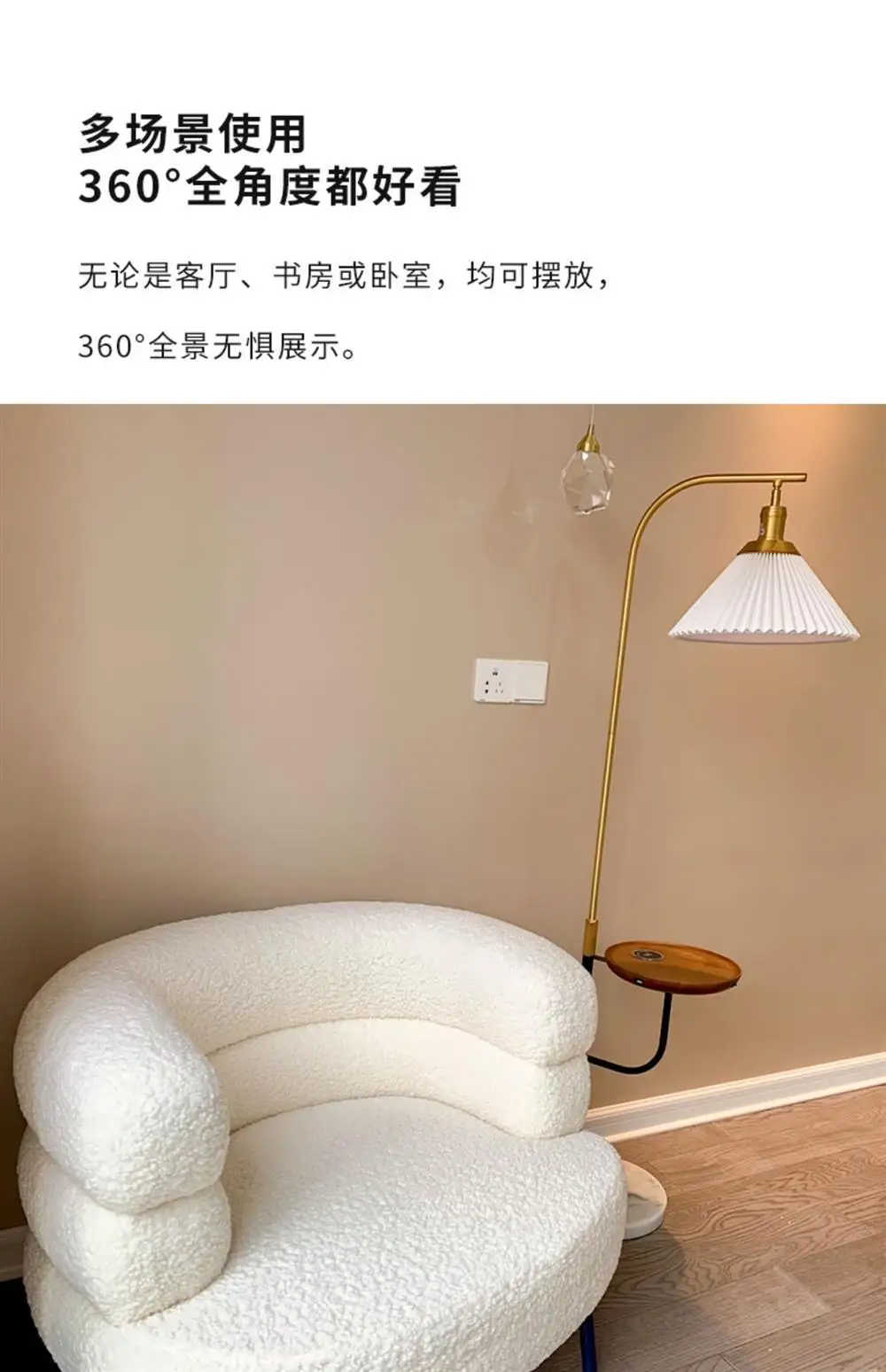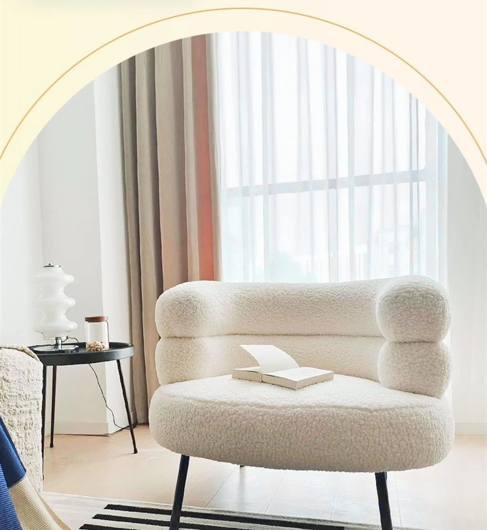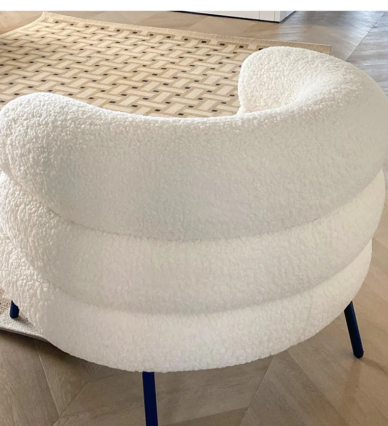 BOBO羊羔绒白色卧室阳台休闲躺椅小户型简约化妆椅现代单人沙发