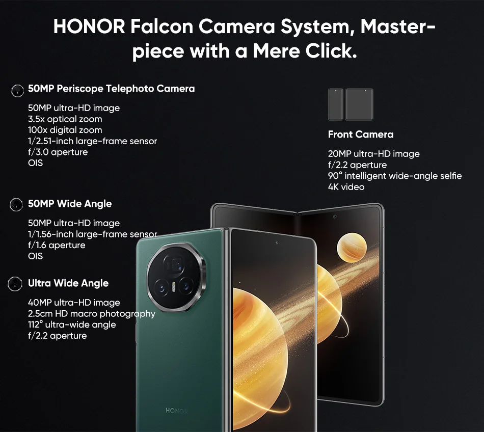 4. Front camera — 20MP Wide Camera (f/2.2) (Interior screen), 20MP Wide Camera (f/2.2) (Exterior screen), support Supported 4K (3840×2160 pixels)video recording, support 2D face unlock, image resolution: 5120×3840 pixels, video resolution: 3840×2160 pixels.