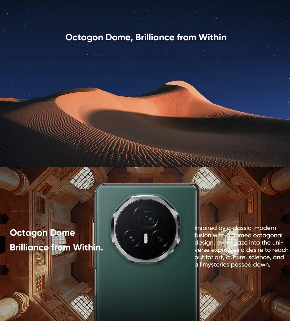 External screen: 2376×1060;Type:OLED; Aspect Ratio: inner screen: 9.78:9, external screen: 20:9; Color: 1.07 billion colors, DCI-P3 wide color gamut; Gestures: supported.