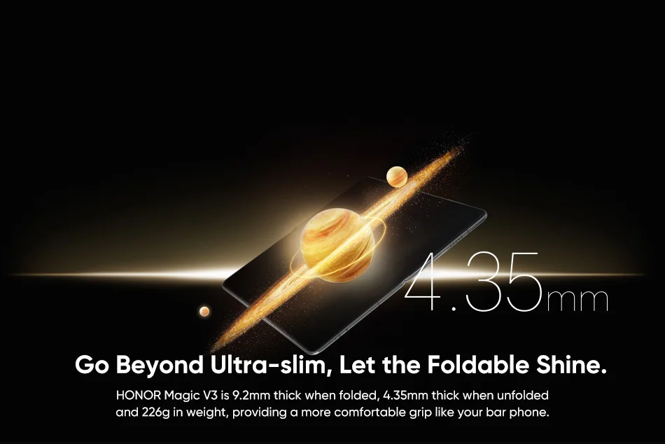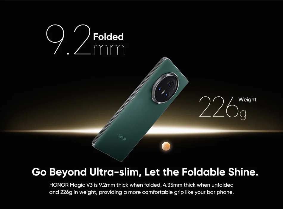 9. Size — Height: 156.6 mm;Width: 74.0 mm(folded),145.3 mm(unfolded); Depth: Black Version: 9.2 mm(folded), 4.35 mm(unfolded), Other Version: 9.3 mm(folded), 4.4 mm(unfolded).