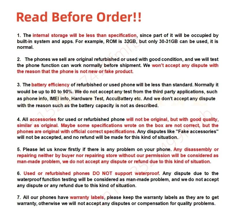 1: The mobile phone has not been disassembled,no parts have been replaced,its airtightness has not been damaged.