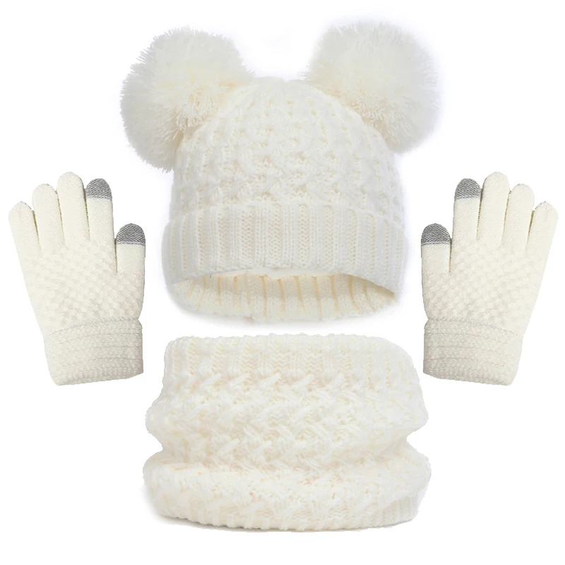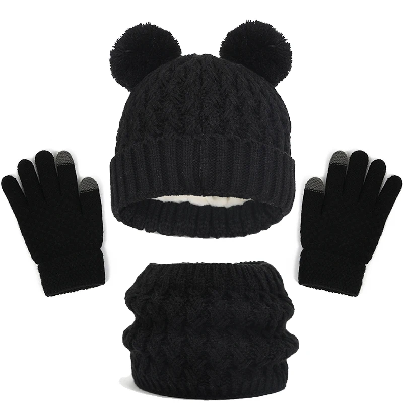Knit Baby Winter Hat Gloves Scarf Set Fleece Pompom Kids Beanie Neck Warmer Skiing Thicken Children Cap for Boys Girls 1-6YKnit Baby Winter...