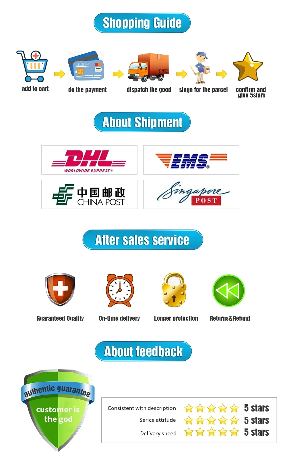 2. There might be importing tax/charge and VAT occurred in the destination customs. It is not included in the price and we will not be responsible for the cost.