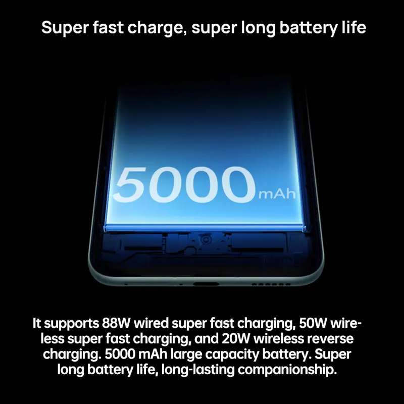 >Battery ——5000mAh (typ), 88W Wired SuperCharge, 50W Wireless SuperCharge