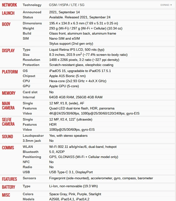 - Apple Model: Apple iPad mini 6