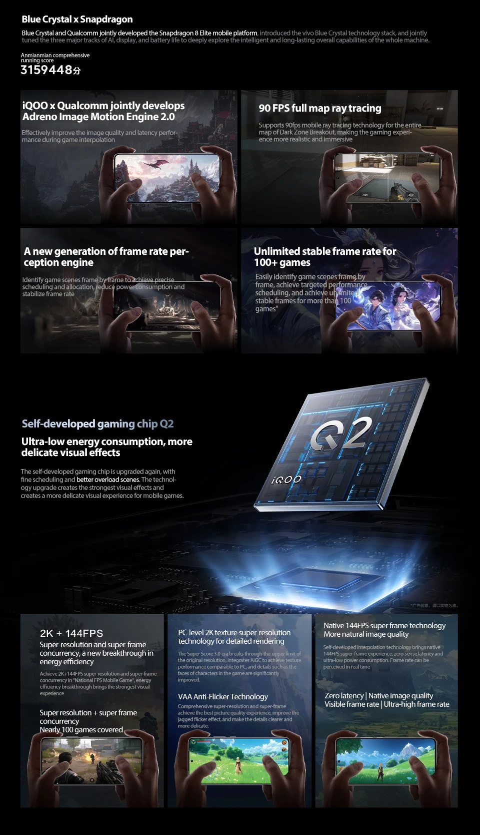 Comes with a self-developed gaming chip Q2, enhancing gaming experiences with stable frame rates and ultra-low latency.
