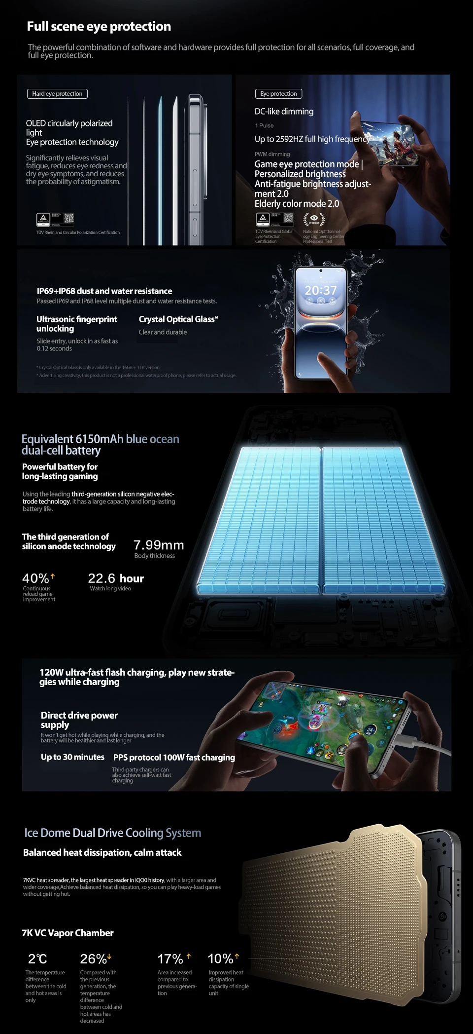 Supports 120W ultra-fast flash charging, allowing the phone to charge up to 50% in just 14 minutes and 100% in 30 minutes.