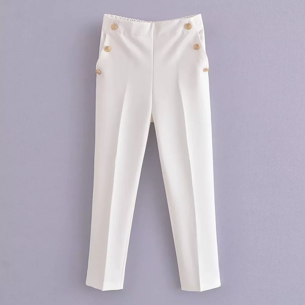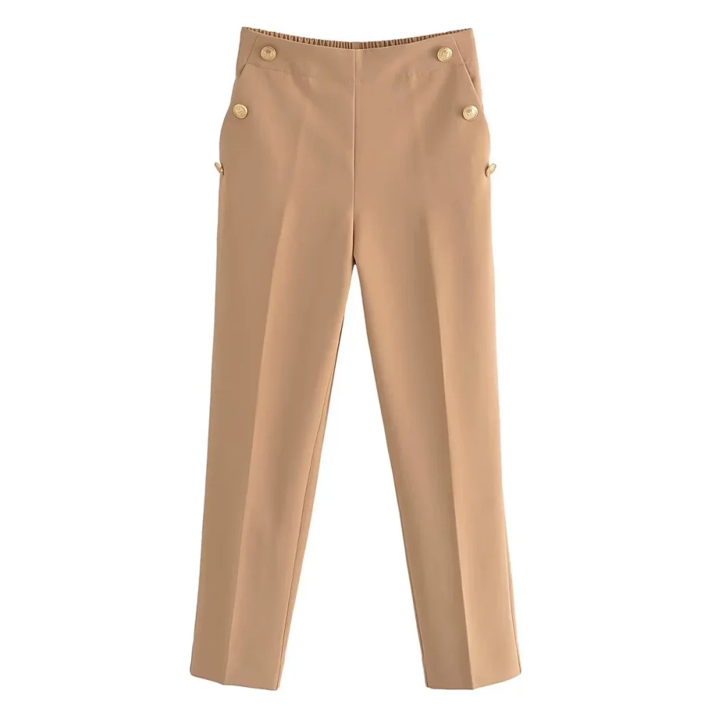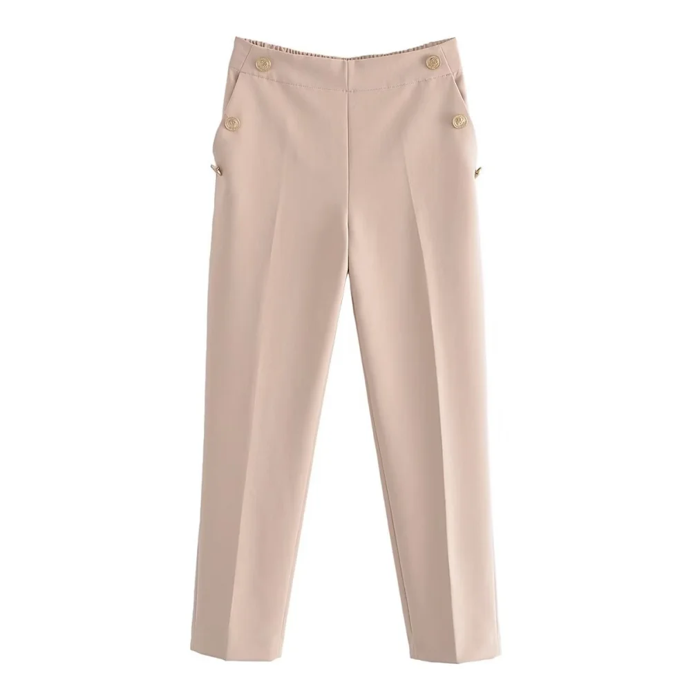 PB&ZA 2023 Autumn New Slim Fit Multi Color Simple Fashion Side Button Decoration Pants Exquisite Casual Straight Leg PantsPB&ZA 2023 ...