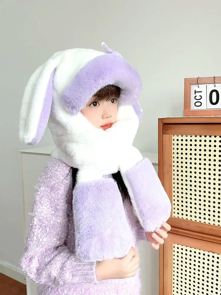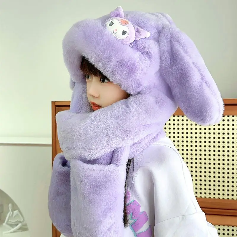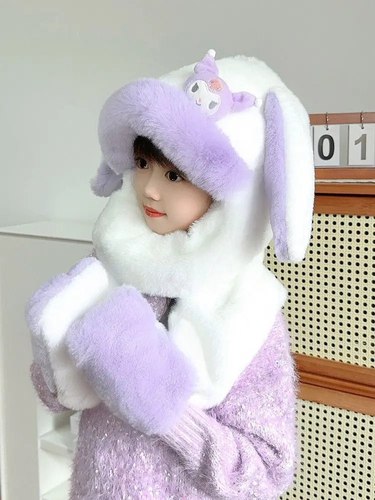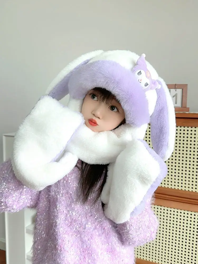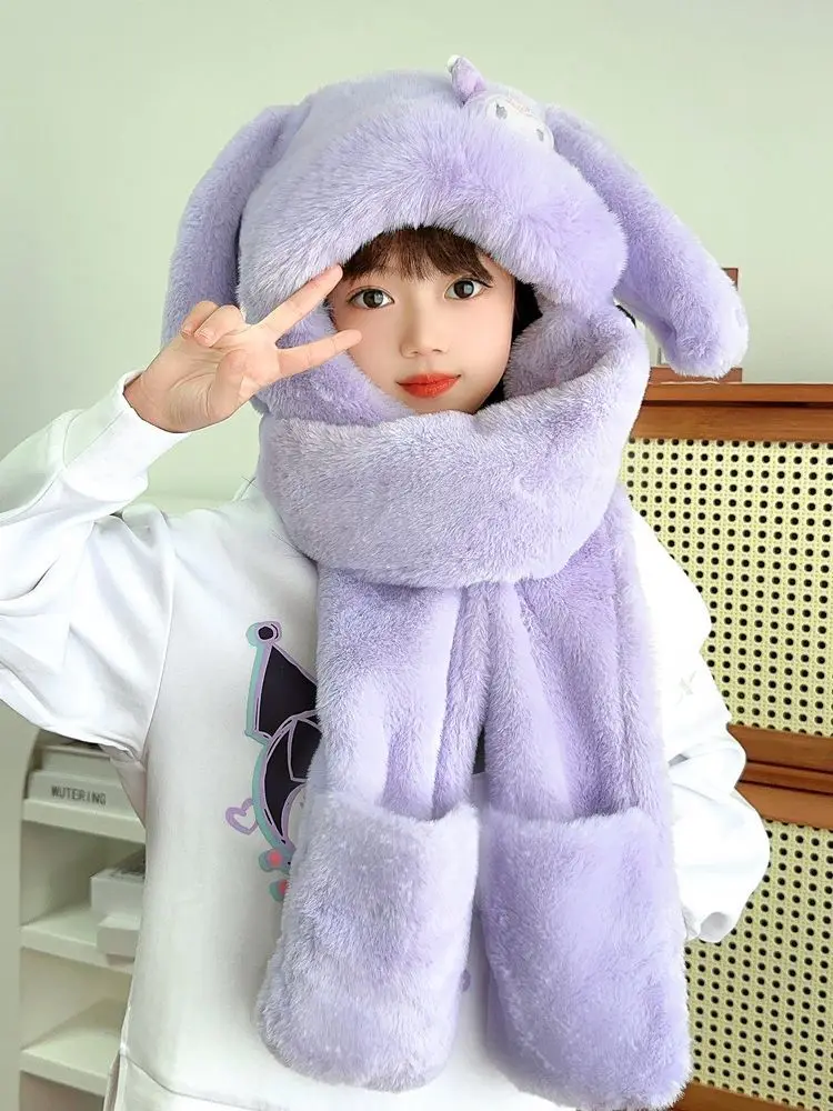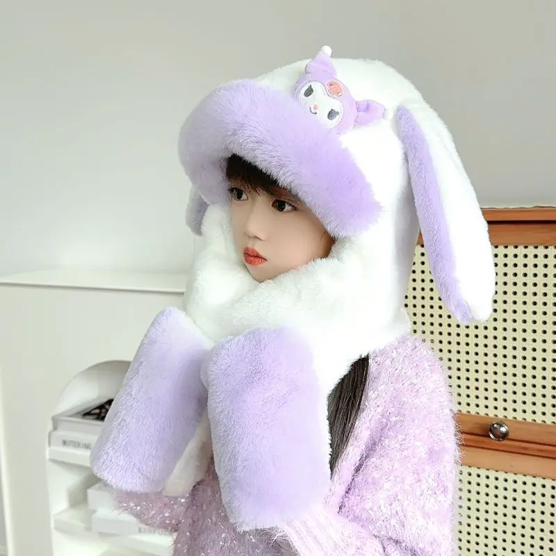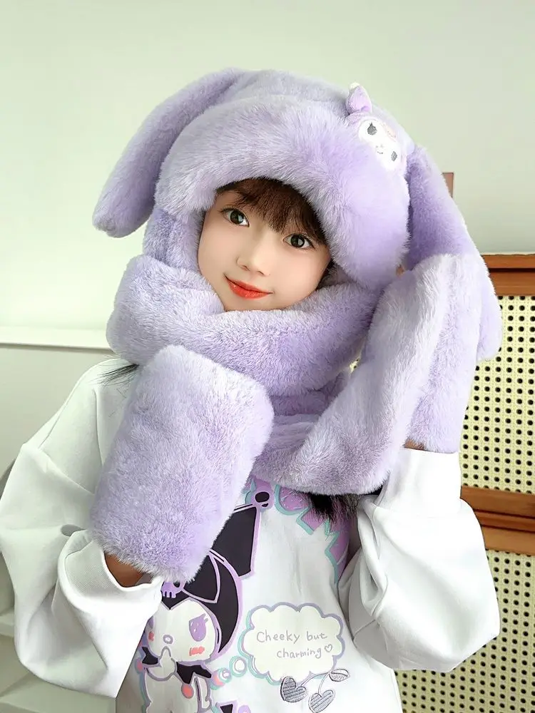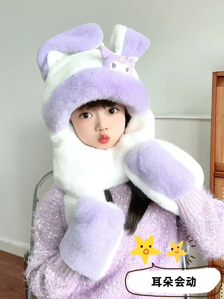 Sanrio Girl Hat Winter Kawaii Thicken Keep Warm Protection From Cold Scarf Gloves One Body Child New Pochacco The Ears Move CuteSanrio Girl Hat ...