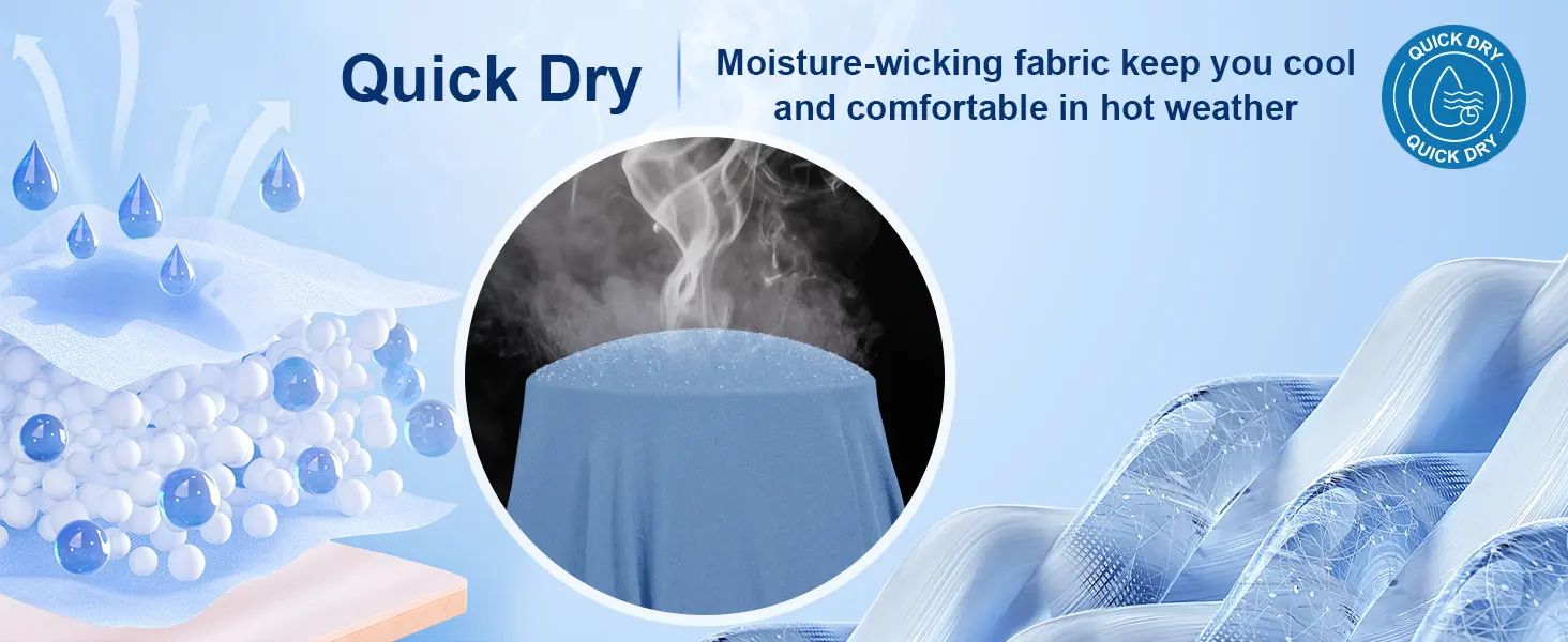 Moisture-wicking fabric keep you cool and comfortable in hot weather.