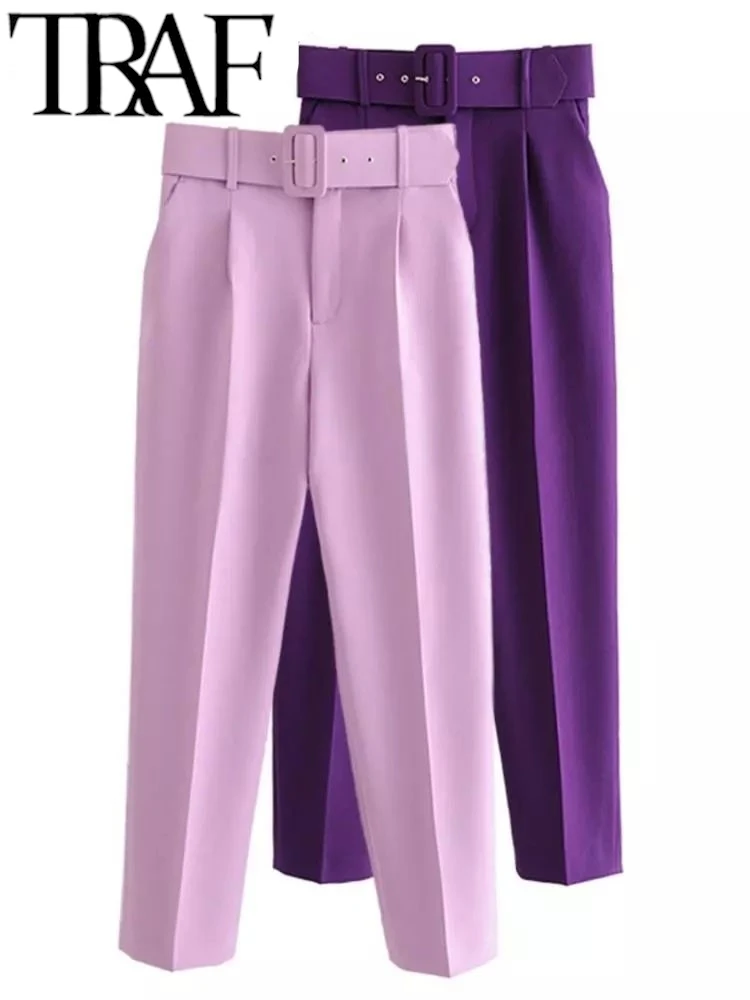 TRAF ROBE Y2K Woman Career Diy Pant Office Lady Suit Pant 2025 Spring With Belt Casual Women Trousers Female Ankle Pant OLTRAF ROBE Y2K Wo...