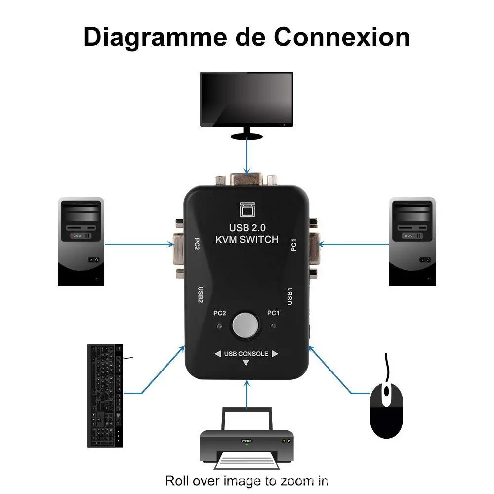 2-port KVM switch in a mini pocket design, lightweight and easy to use.