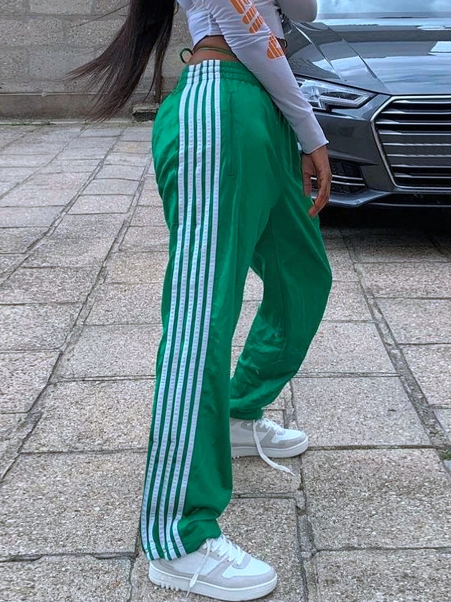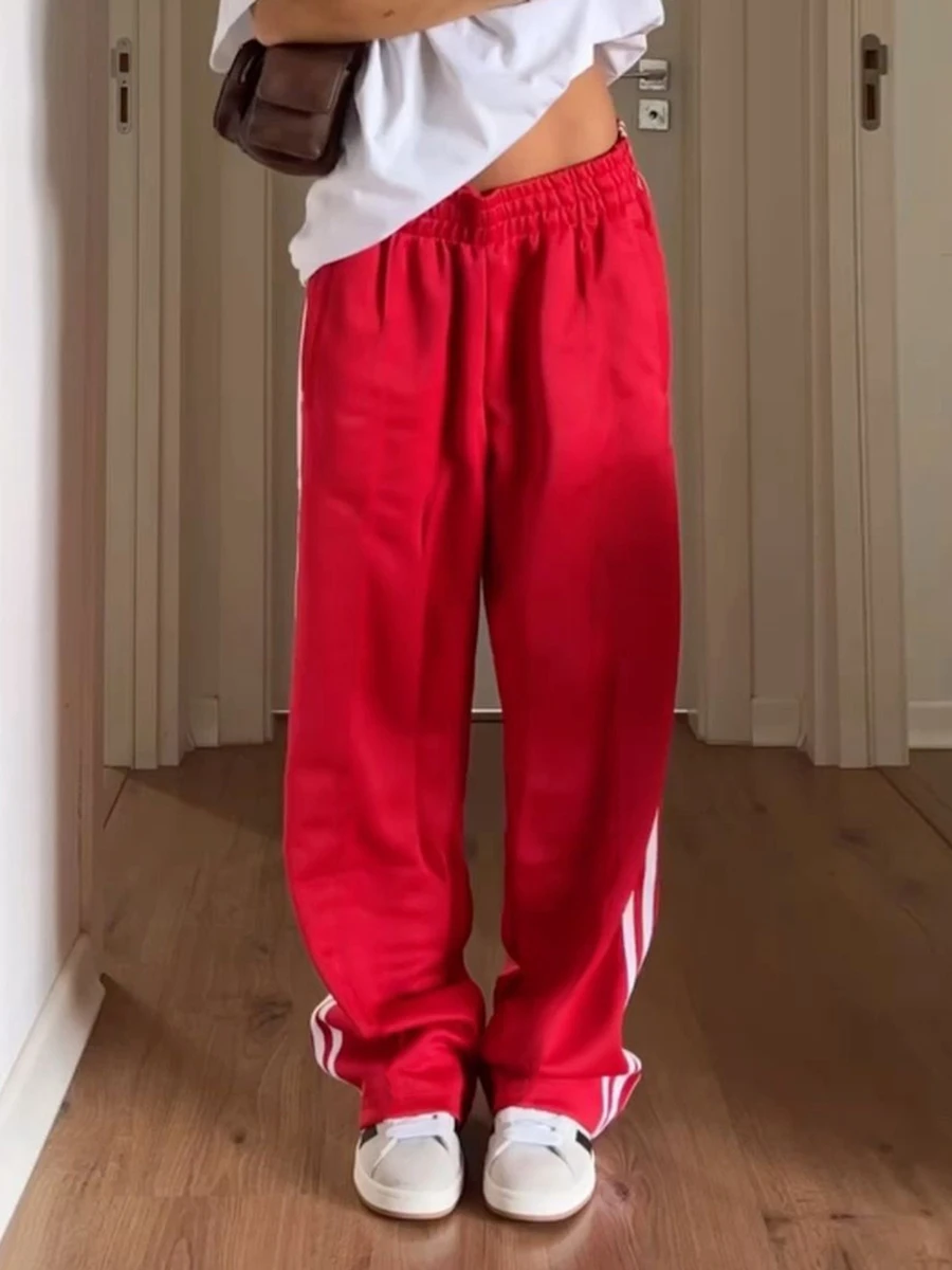 Women Y2k Wide Leg Track Pants Baggy Side Striped Joggers Sweatpants Elastic Waist Color Block Parachute Pants with PocketsWomen Y2k Wide L...